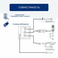 К монитору вы сможете подключить 1 вызывную панель и 1 дополнительную камеру видеонаблюдения.