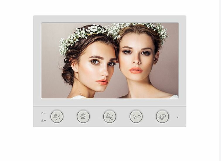 Монитор оснащен 7" TFT LCD дисплеем разрешением 800х480. Механическими кнопками управления. С помощью которых можно управлять электрозамком, просматривать изображение с вызывной панели и вести переговоры с посетителем.