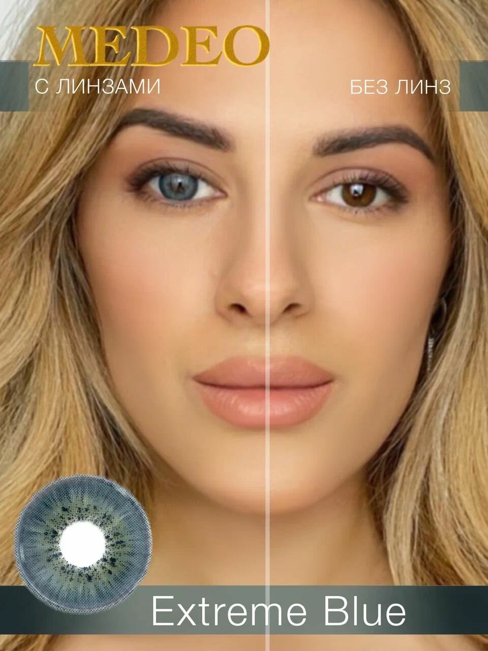 Цветные контактные линзы Medeo Extreme Blue 3 месяца, -2.50 / 8.6 / 14.2, голубой, 2 шт.: сравнение цен, характеристики, фото, актуальное наличие и цены.