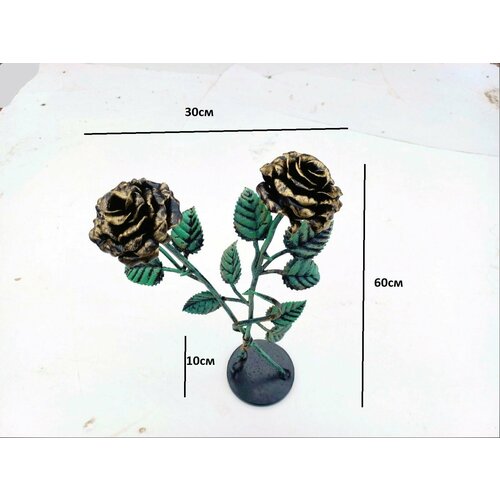 Роза кованая цвет: чёрный + золото+ зеленый. Размер 60х30х10 см. Это ручная работа с эксклюзивными элементами художественной ковки. Каждый цветок куётся нашим кузнецом в ручную и не имеет аналогов. Наши изделия сочетают в себе высокое качество и роскошный внешний вид. Мы производим множество эксклюзивных изделий. Для просмотра всего ассортимента переходите. Популярность художественной ковки сохраняется на протяжении нескольких столетий из-за сочетания высокой прочности и изящного внешнего вида. Устойчивость кованых изделий к перепадам температуры, осадкам, ветрам. Благодаря специальному покрытию металл не подвержен коррозии. Кованые детали практически не гнутся, не ломаются, не деформируются. Длительный период эксплуатации – до двух десятилетий. При этом первоначальный внешний вид остается неизменным. Будем благодарны за отзыв.