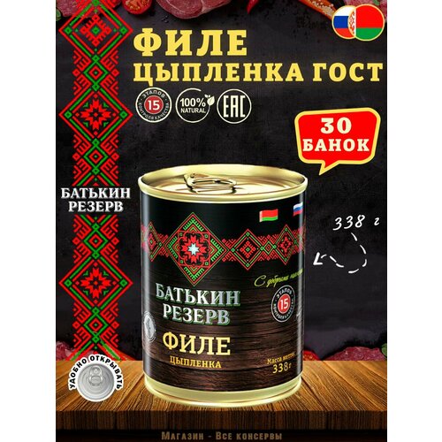 Купить Цыпленок филе в желе, Батькин резерв, ГОСТ, 30 шт. по 338 г с доставкой по всей России. Цыпленок филе в желе, Батькин резерв, ГОСТ, 30 шт. по 338 г: сравнение цен, характеристики, фото, актуальное наличие и цены.