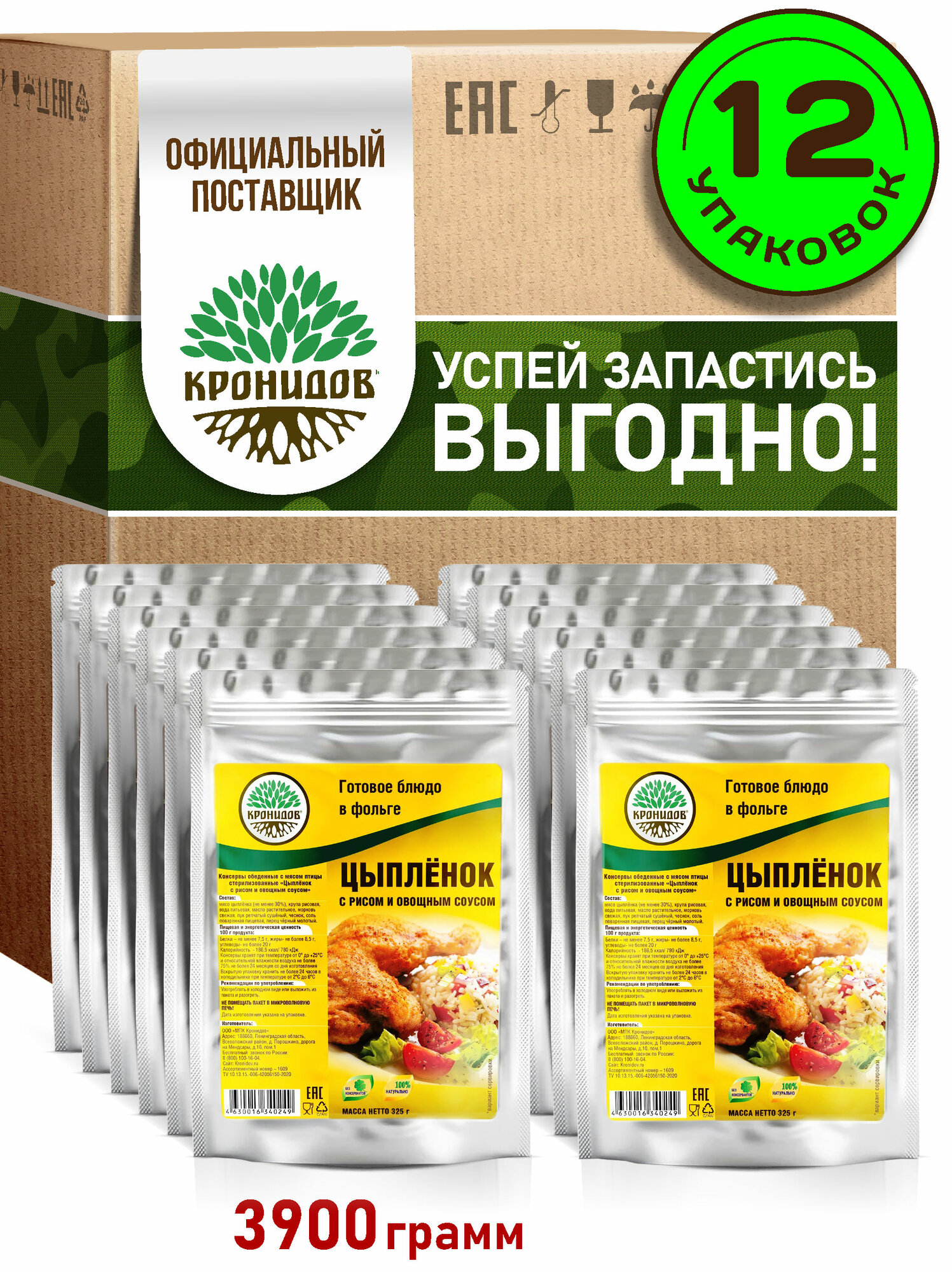 Купить Готовое блюдо Кронидов Цыпленок с рисом и овощным соусом Готовая еда/ Консервы натуральные Набор 12 шт. по 325 г с доставкой по всей России.
