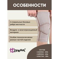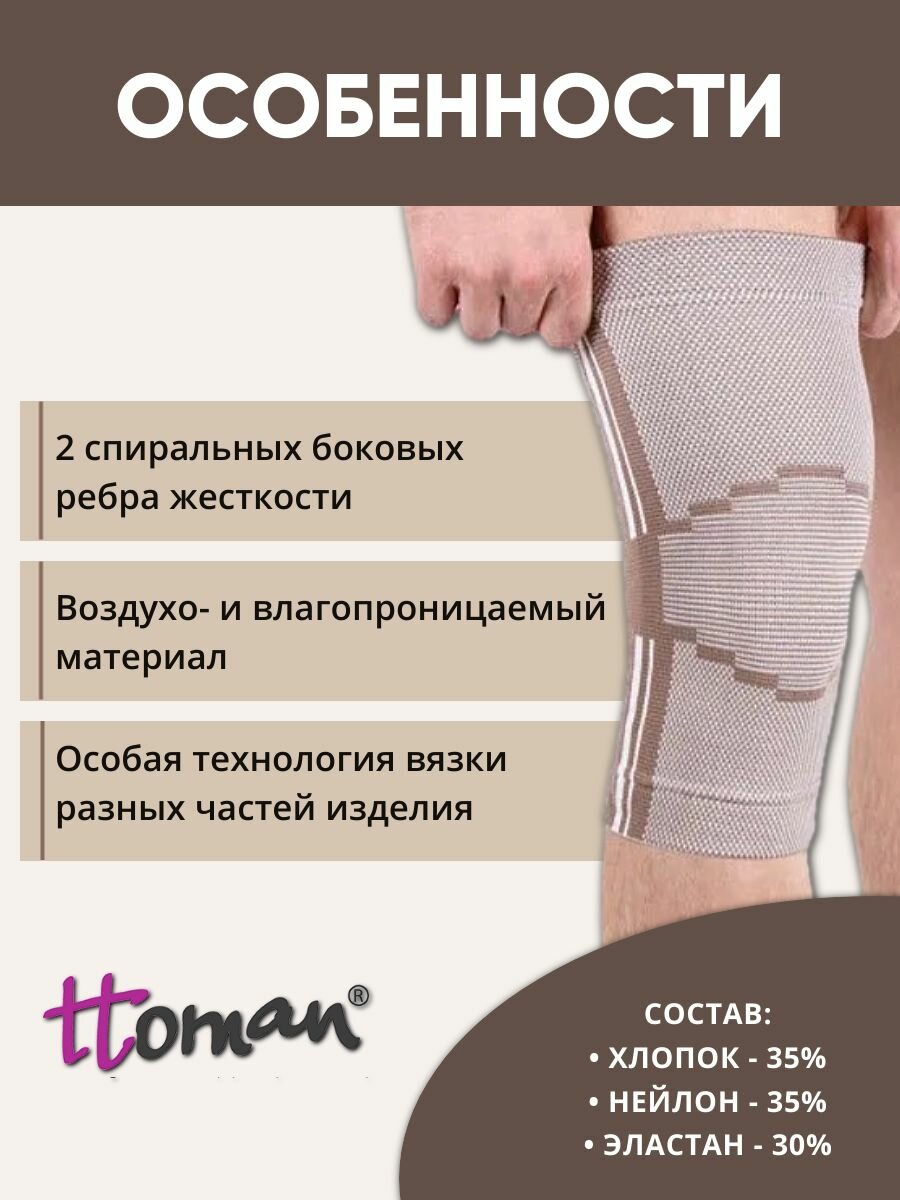 Имеет два спиральных боковых ребра жесткости для лучшей фиксации и стабилизации. Изготовлен из дышащего, гипоаллергенного материала, что делает применение бандажа комфортным и безопасным для кожи.