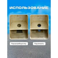 Туалет сделан под выгребную яму, но также предусмотрена возможность использования под сменную емкость (ведро).
