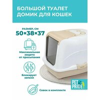 Туалет для кошек 50 х 38 х 37 см, лоток закрытый и совок «Pettails» домик с дверцей
