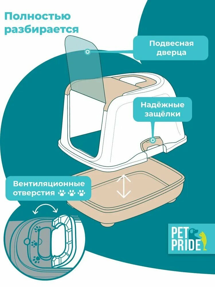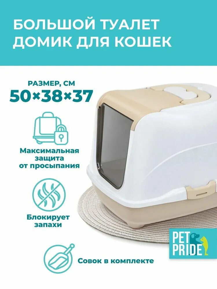 Купить Туалет для кошек 50 х 38 х 37 см, лоток закрытый и совок «Pettails» домик с дверцей с доставкой по всей России.