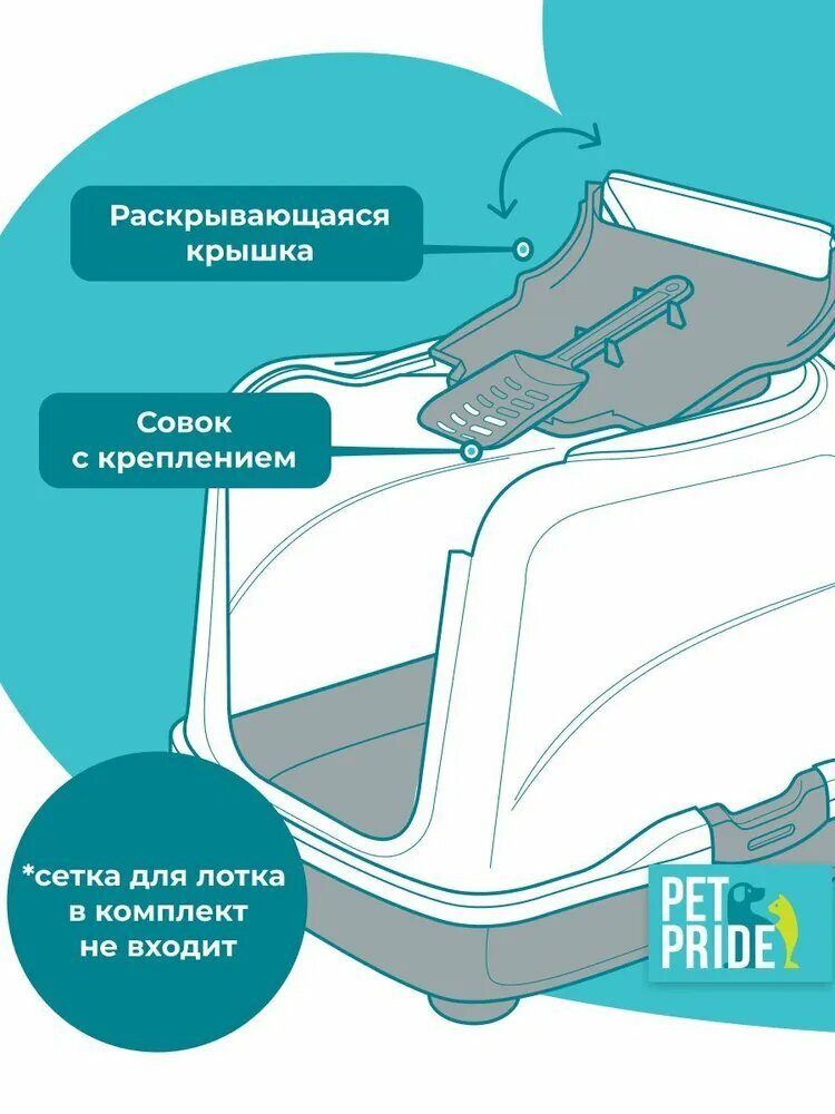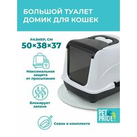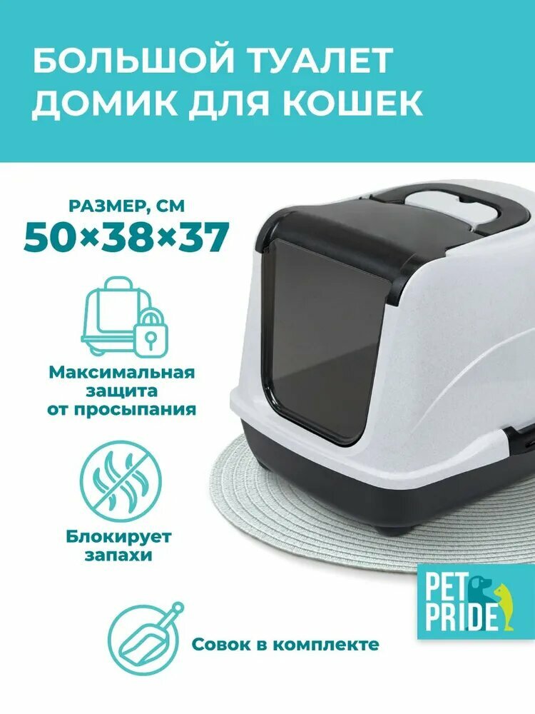 Купить Туалет для кошек 50 х 38 х 37 см, лоток закрытый и совок «Pettails» домик с дверцей с доставкой по всей России.