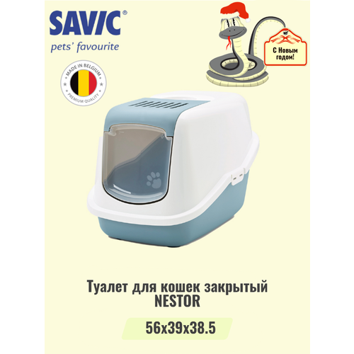 Купить Туалет для кошек закрытый SAVIC NESTOR белый/голубой камень с доставкой по всей России.