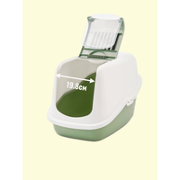Туалет для кошек пластиковый премиум класса с закрытый дверцей. Оснащён ячейкой для сменного фильтра. Закрытые кошачьи лотки пользуются большим спросом, так как выглядят более эстетично, чем открытые, спасают от неприятных запахов и поэтому могут располагаться не только в санузле, но и, например, в коридоре. Одно из самых важных преимуществ: закрытый туалет – просто спасение для тех хозяев, чьи кошки имеют привычку «промахиваться» мимо лотка.