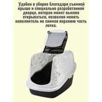 - Защита от рассыпания наполнителя: Особое внимание уделено конструкции бортиков, которые эффективно предотвращают разбрасывание наполнителя по дому.