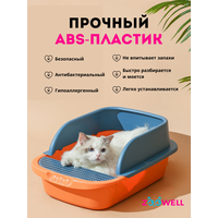 Купить Туалет-лоток для кошек с бортиком ZooWell Care с совком, цвет оранжевый/синий с доставкой по всей России.