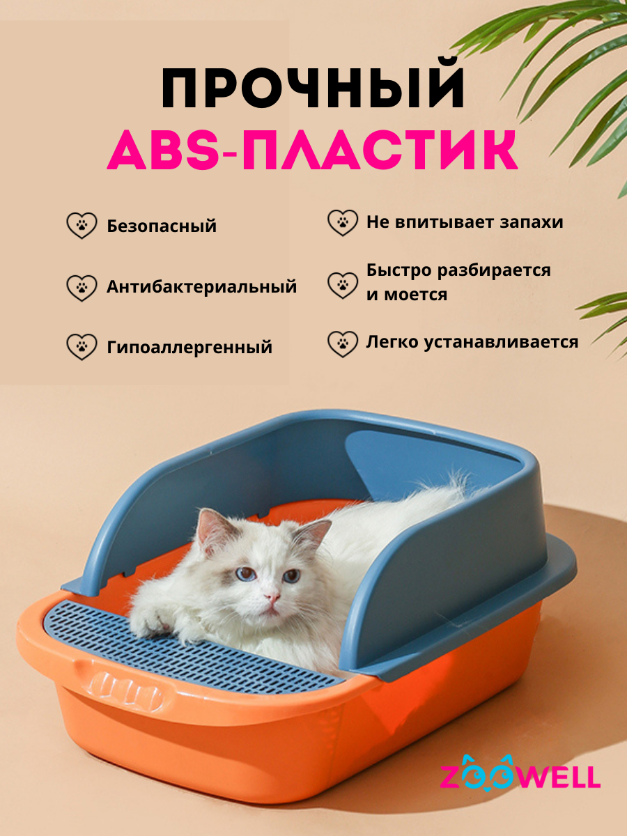 Туалет-лоток для кошек с бортиком ZooWell Care с совком, цвет оранжевый/синий: сравнение цен, характеристики, фото, актуальное наличие и цены.