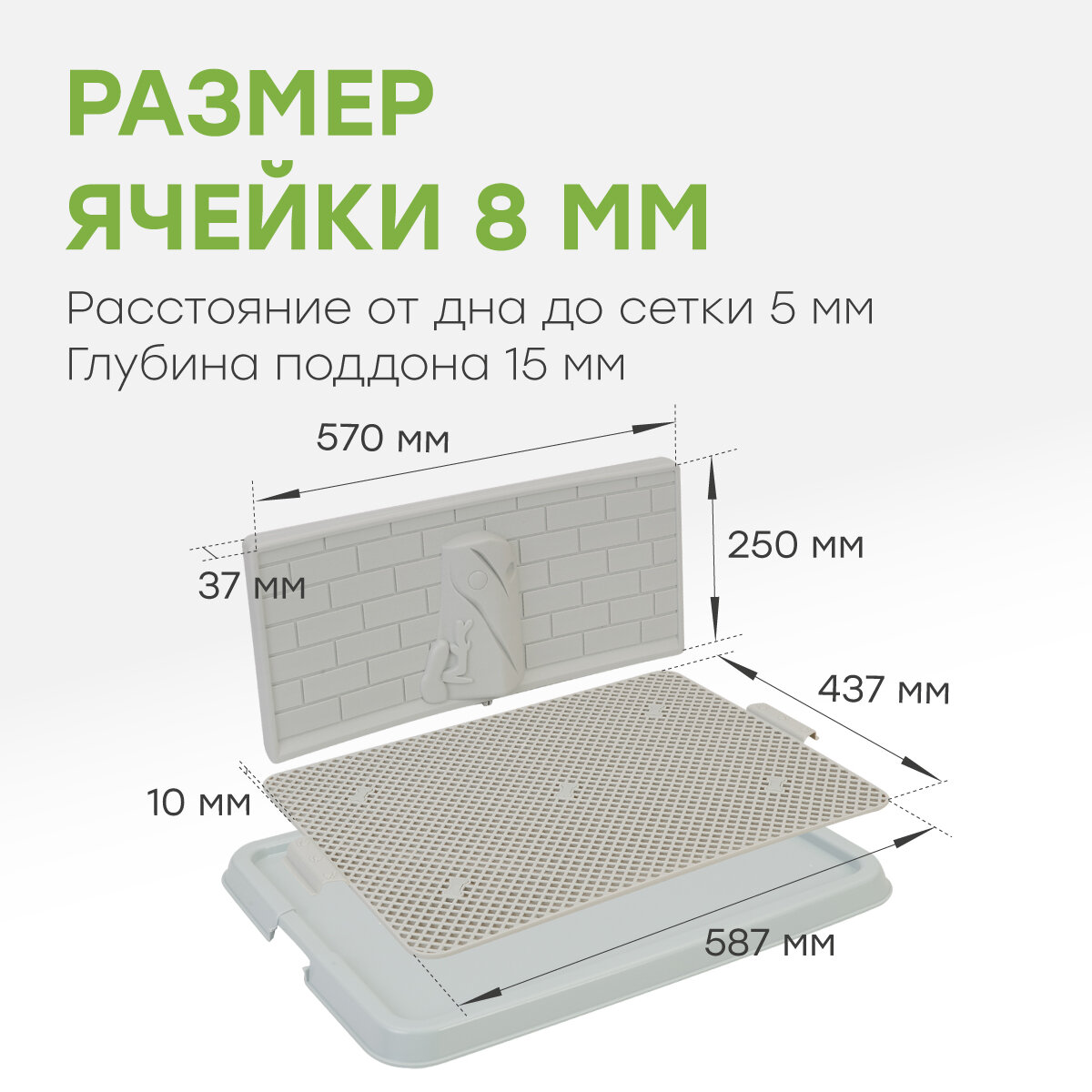 Туалет со стенкой для щенков и собак мелких пород (весом до 12кг) состоит из лотка с решеткой под пеленку и съемного столбика. Столбик устанавливается на решетку (в любое удобное место) и обеспечивает возможность питомцу сходить в туалет в комфортной естественной позе, при этом сохранится чистота и гигиена стен в Вашем доме. Рекомендуется использование с гигиенической гелевой/целлюлозной одноразовой пеленкой. Одноразовая пеленка надежно закрепляется под сетку боковыми фиксаторами (пеленка в комплект не входит и приобретается отдельно). Благодаря удобным креплениям сетка легко снимается и крепится на основание лотка. Она не только предотвратит намокание лап щенка, но и убережет пеленку от острых когтей и зубов. Не забывайте ежедневно мыть стенку и сетку лотка. Высококачественный нетоксичный пластик, используемый в производстве, делает изделие полностью безопасным для животных и их владельцев. Резиновые ножки в основании защитят Ваш пол от царапин и предотвратят скольжение.