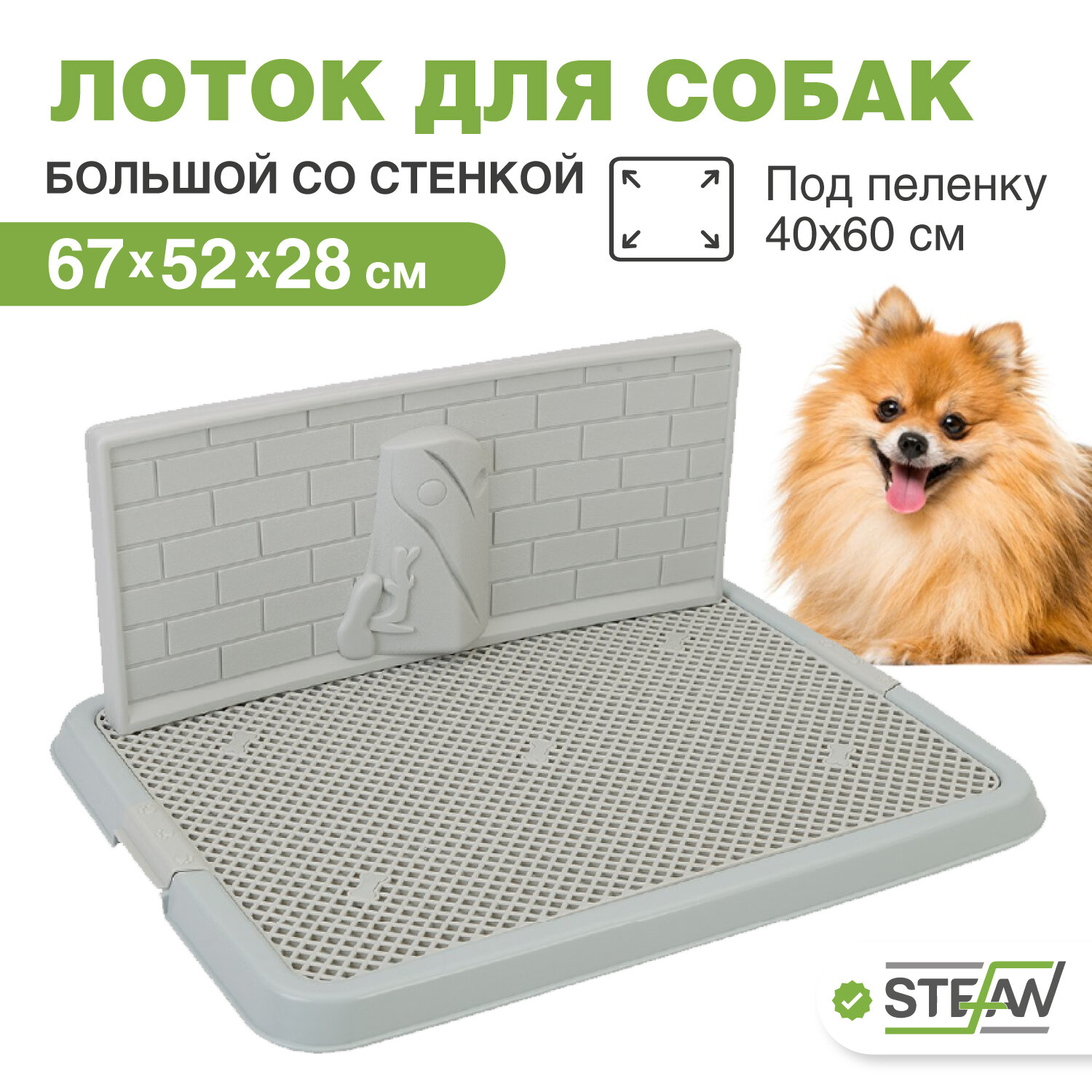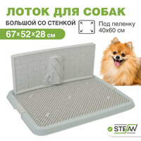 Туалет со стенкой STEFAN для щенков и собак мелких пород идеально подойдет для удовлетворения естественной потребности кобелей. Лоток для собак мелких пород (весом до 10кг) состоит из лотка с решеткой под пеленку и съемной стенки. Конструкция лотка с рельефной двусторонней стенкой (кирпичная стена с одной стороны и природный ландшафт с деревом - с другой и сетка) обеспечит чистоту и гигиену стен в Вашем доме. Стенка устанавливается на решетку (любой удобной стороной) и обеспечивает возможность питомцу сходить в туалет в комфортной естественной позе, при этом сохранится чистота и гигиена стен в Вашем доме. Главное преимущество туалетов Штефан заключается в том, что лапки Вашего питомца будут оставаться совершенно сухими и чистыми, так же как и у лотка с решеткой под наполнитель. Эта модель очень хорошо подходит для приучения к туалету. Лаконичный дизайн, удобная решетка, и оптимальный размер лотка сделают его использование комфортным для Вашего питомца. Одноразовая пеленка надежно закрепляется под сетку боковыми фиксаторами (пеленка в комплект не входит и приобретается отдельно). Благодаря удобным креплениям сетка легко снимается и крепится на основание лотка. Она не только предотвратит намокание лап щенка, но и убережет пеленку от острых когтей и зубов. Не забывайте ежедневно мыть столбик и сетку лотка. Рекомендуется использование с гигиенической гелевой/целлюлозной одноразовой пеленкой, рекомендуемый размер пеленки - 40х60см, либо пеленка большего размера, которую можно подвернуть или подрезать под необходимый размер. Пеленка в комплект не входит и приобретается отдельно. Допускается также использование лотка без пеленки. Собачий туалет-лоток изготовлен из высококачественного пластика, легко моется водой и не впитывает запахи. Резиновые ножки в основании защитят Ваше напольное покрытие от царапин и повреждений, а также предотвратят скольжение туалета, как и силиконовый лоток коврик с небольшим бортиком. Такая модель туалета подойдет в каждый дом где есть питомец. Переходите в наш магазин бренда Stefan, нажав на значок логотипа на странице товара, где Вы сможете увидеть большой ассортимент туалетов: маленький горшок с совком, туалет для собак со столбиком, туалет для собак большой, туалет для собак мелких пород, туалет для собак под пеленку, лоток для собак большой, лоток для собак под пеленки, лоток для собак мелких пород, закрытый туалет домик, глубокий туалет(унитаз) с бортами и выдвижным поддоном(совок в комплекте), купить аксессуары для больших крупных и маленьких собак, а так же товары для других домашних животных (кошек, кролика, хомяка и других грызунов).