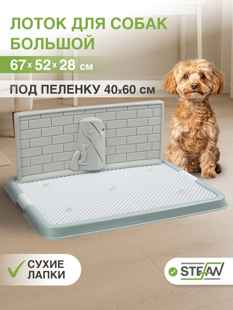 Туалет со стенкой STEFAN для щенков и собак мелких пород идеально подойдет для удовлетворения естественной потребности кобелей. Лоток для собак мелких пород (весом до 10кг) состоит из лотка с решеткой под пеленку и съемной стенки. Конструкция лотка с рельефной двусторонней стенкой (кирпичная стена с одной стороны и природный ландшафт с деревом - с другой и сетка) обеспечит чистоту и гигиену стен в Вашем доме. Стенка устанавливается на решетку (любой удобной стороной) и обеспечивает возможность питомцу сходить в туалет в комфортной естественной позе, при этом сохранится чистота и гигиена стен в Вашем доме. Главное преимущество туалетов Штефан заключается в том, что лапки Вашего питомца будут оставаться совершенно сухими и чистыми, так же как и у лотка с решеткой под наполнитель. Эта модель очень хорошо подходит для приучения к туалету. Лаконичный дизайн, удобная решетка, и оптимальный размер лотка сделают его использование комфортным для Вашего питомца. Одноразовая пеленка надежно закрепляется под сетку боковыми фиксаторами (пеленка в комплект не входит и приобретается отдельно). Благодаря удобным креплениям сетка легко снимается и крепится на основание лотка. Она не только предотвратит намокание лап щенка, но и убережет пеленку от острых когтей и зубов. Не забывайте ежедневно мыть столбик и сетку лотка. Рекомендуется использование с гигиенической гелевой/целлюлозной одноразовой пеленкой, рекомендуемый размер пеленки - 40х60см, либо пеленка большего размера, которую можно подвернуть или подрезать под необходимый размер. Пеленка в комплект не входит и приобретается отдельно. Допускается также использование лотка без пеленки. Собачий туалет-лоток изготовлен из высококачественного пластика, легко моется водой и не впитывает запахи. Резиновые ножки в основании защитят Ваше напольное покрытие от царапин и повреждений, а также предотвратят скольжение туалета, как и силиконовый лоток коврик с небольшим бортиком. Такая модель туалета подойдет в каждый дом где есть питомец. Переходите в наш магазин бренда Stefan, нажав на значок логотипа на странице товара, где Вы сможете увидеть большой ассортимент туалетов: маленький горшок с совком, туалет для собак со столбиком, туалет для собак большой, туалет для собак мелких пород, туалет для собак под пеленку, лоток для собак большой, лоток для собак под пеленки, лоток для собак мелких пород, закрытый туалет домик, глубокий туалет(унитаз) с бортами и выдвижным поддоном(совок в комплекте), купить аксессуары для больших крупных и маленьких собак, а так же товары для других домашних животных (кошек, кролика, хомяка и других грызунов).