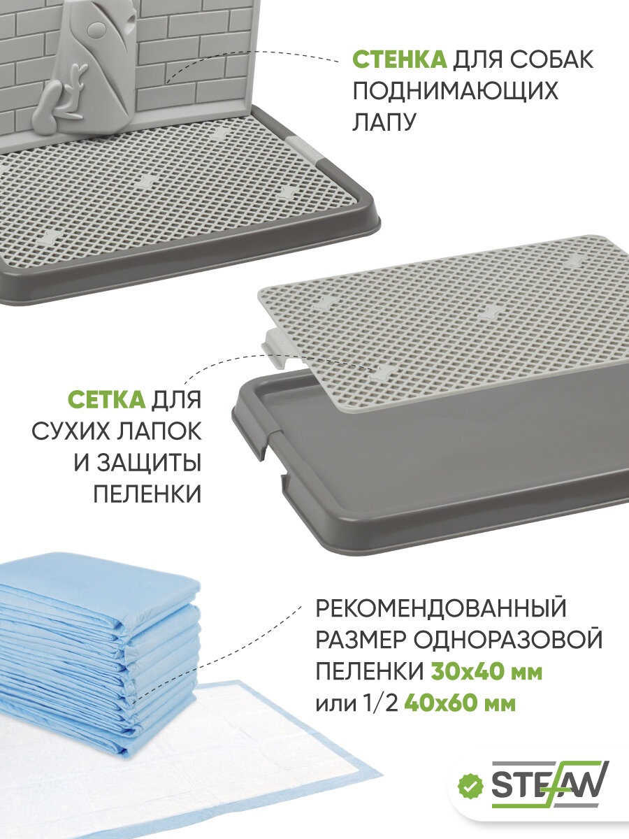 Туалет-лоток со стенкой для собак STEFAN, малый (S) 50х38х28, темно-серый, BP1301GG: сравнение цен, характеристики, фото, актуальное наличие и цены.