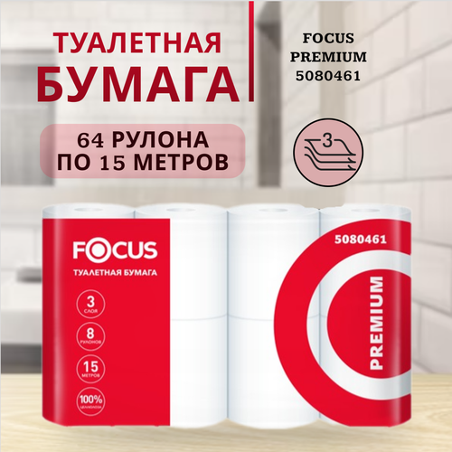 Купить Туалетная бумага Focus Premium 5080461 трехслойная, 1 упаковка — 64 рулона с доставкой по всей России.