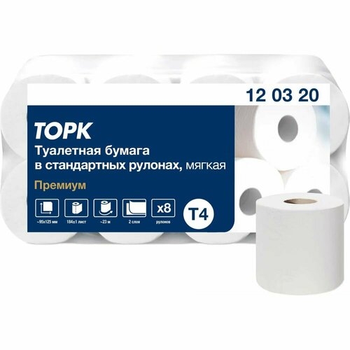 Туалетная бумага TORK Premium 2-слойная спайка 8 шт. х 23 м 120320 127835 22556 идеальное решение создания комфортной атмосферы для гостей в туалетных комнатах с невысокой посещаемостью.