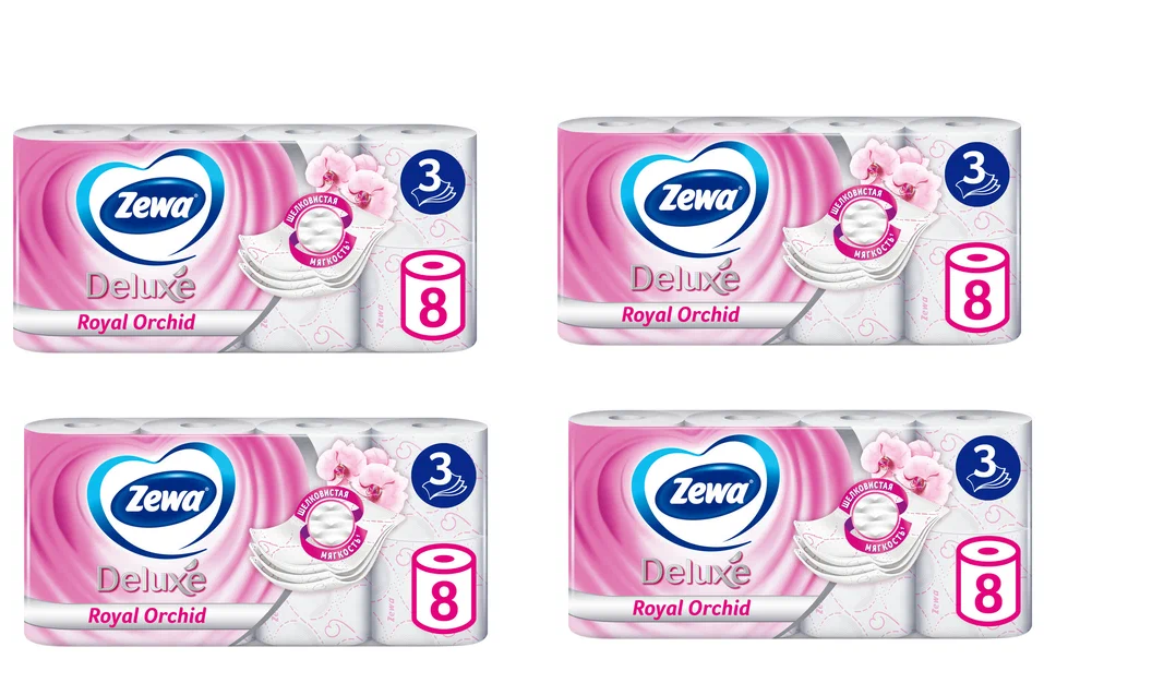 Попробуйте шелковистую мягкость* туалетной бумаги Zewa Deluxe. Впитывающие подушечки, созданные по особой технологии, обеспечивают деликатное очищение. Удовольствие и Комфорт – вашей коже это понравится! • Белая 3-х слойная туалетная бумага без аромата • Роскошная туалетная бумага с впитывающими подушечками • Шелковистая мягкость* для вашей нежной кожи • Втулка не смывается • 4/8/12/24 рулонов в упаковке *Продукт не содержит волокон шелка В комплекте 4 уп