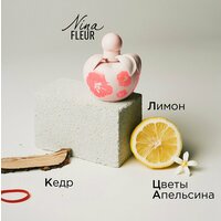 Этот аромат, открывающийся фруктово-цитрусовым взрывом, сочетает в себе искрящиеся, острые и хрустящие ноты гренни кузнеца и итальянского лимона. Этот поп-топ сливается с цветущим сердцем, переполненным самыми сияющими гранями флердоранжа и нероли. Обволакивающий сливочный мускус контрастирует с элегантным кедровым деревом, создавая мягкую основу этой фруктово-цветочной туалетной воды. Nina Fleur Nina Ricci принадлежит к группе цветочные фруктовые. Выпущен в 2022 году. Парфюмер: Olivier Cresp. Верхние ноты: Итальянский лимон и Яблоко "Granny Smith"; средние ноты: Цветок апельсина и Нероли; базовые ноты: Белый мускус и Кедр.