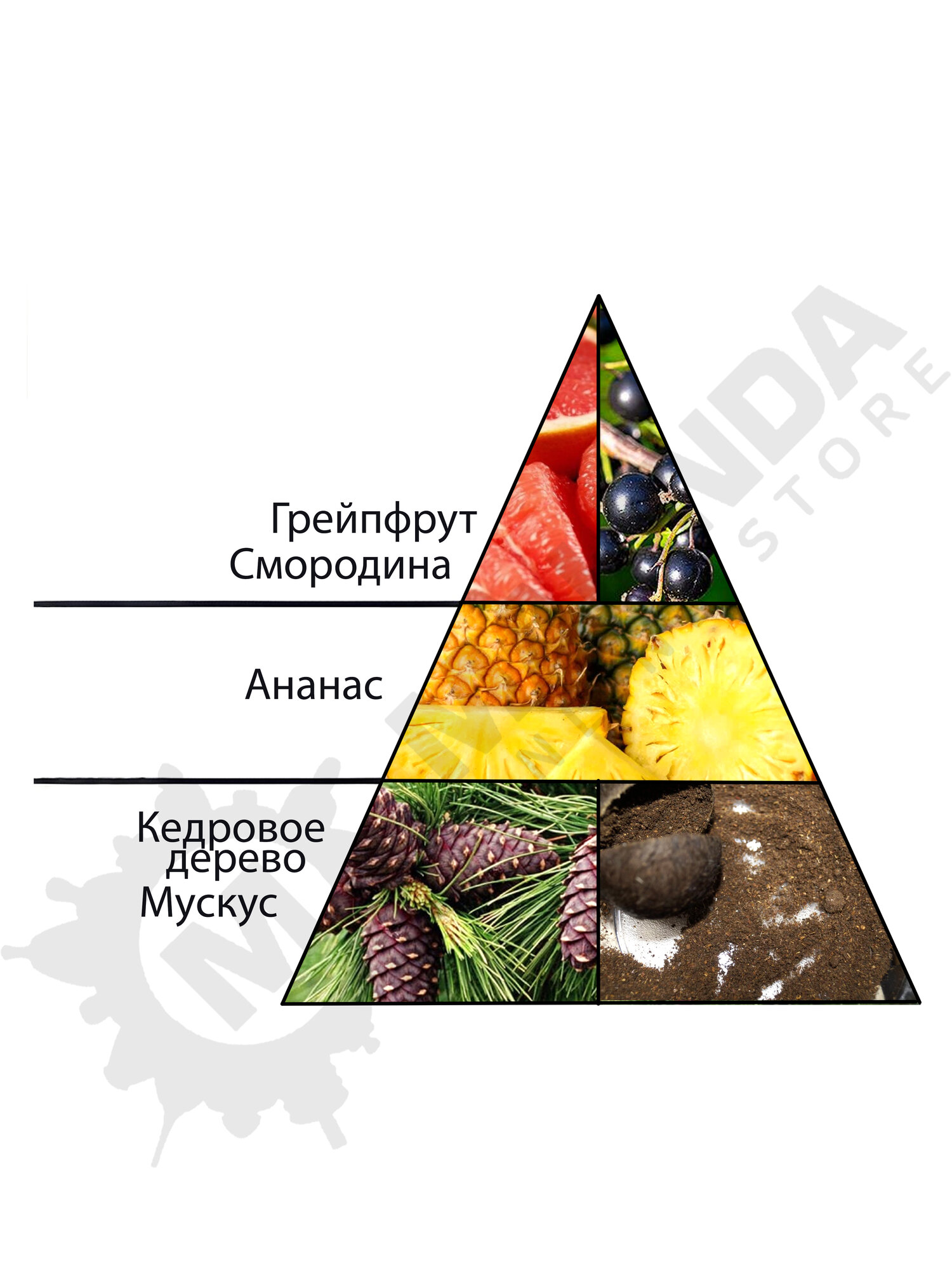 Начальная нота аромата состоит из грейпфрута и черной смородины, которые сменяются сердечными нотами ананаса. Завершается композиция шлейфом из кедрового дерева и мускуса.