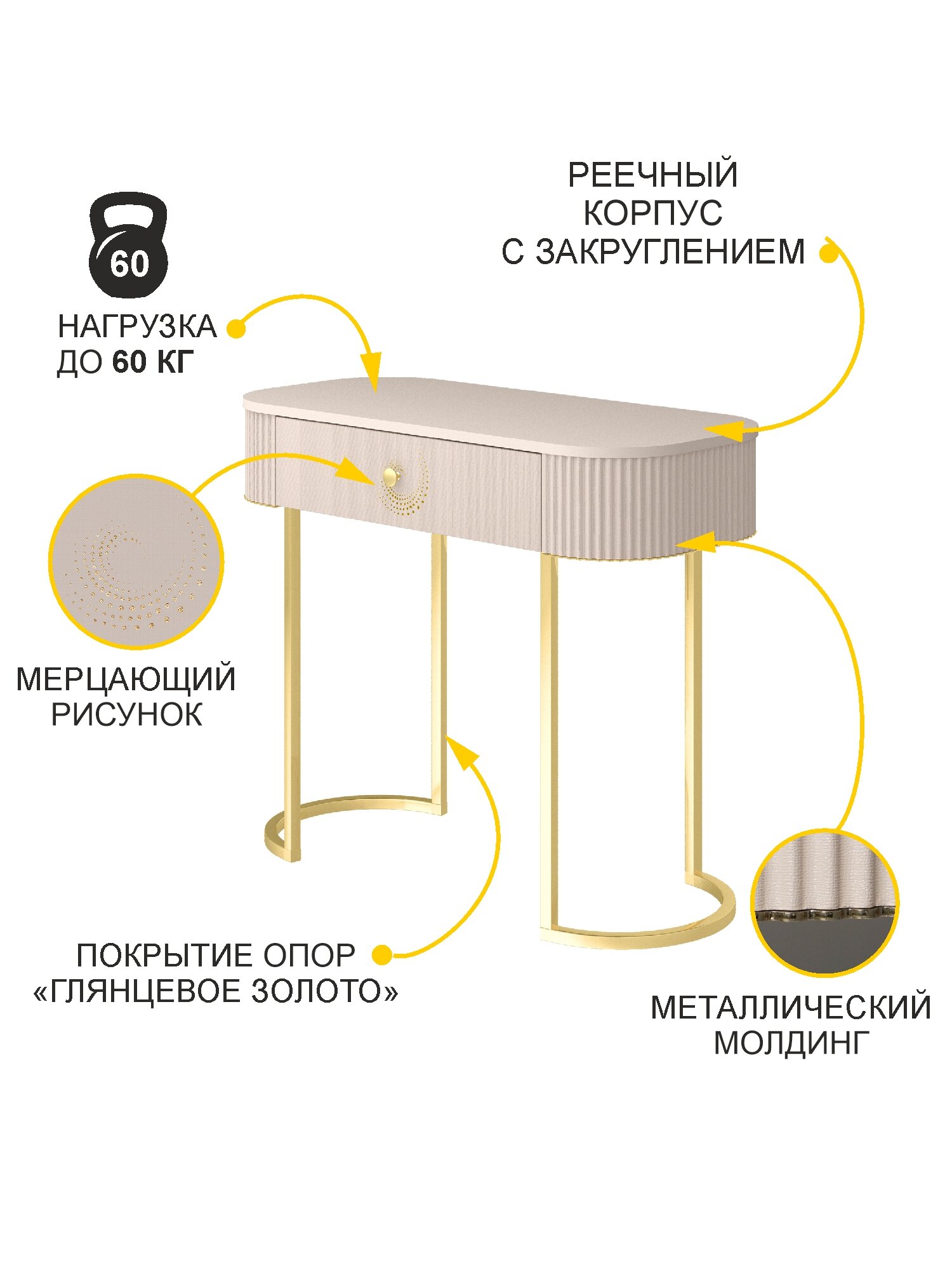 Туалетный столик Белла 2.1 (02) Кашемир/Золото: сравнение цен, характеристики, фото, актуальное наличие и цены.