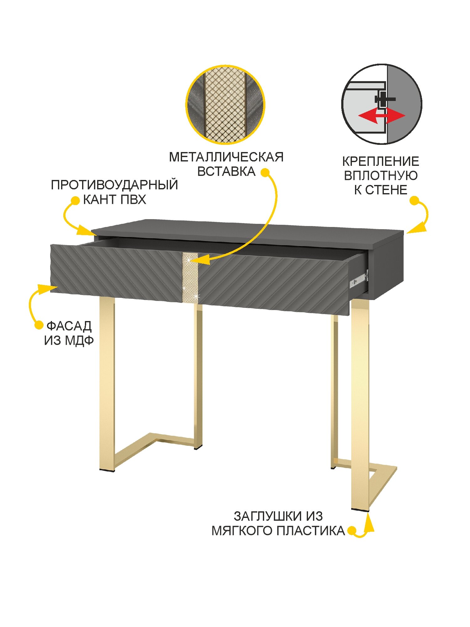 Туалетный столик Белла 4 (03) Оникс/Графит лен/Золото: сравнение цен, характеристики, фото, актуальное наличие и цены.