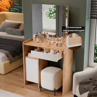 Туалетный столик оснащен зеркалом, что позволяет вам всегда быть в курсе своего внешнего вида. Также в комплекте идет полка для хранения косметики и аксессуаров, а также ящик/тумба для хранения мелких предметов.
