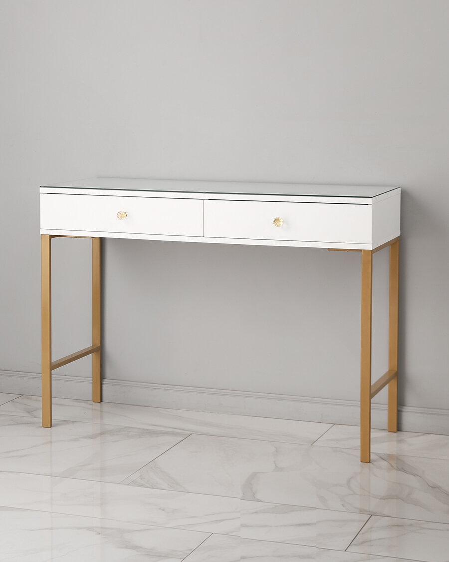 Туалетный столик-консоль белый на золотых ножках , ЛДСП, металл, 100 x 40 x 78 см: сравнение цен, характеристики, фото, актуальное наличие и цены.
