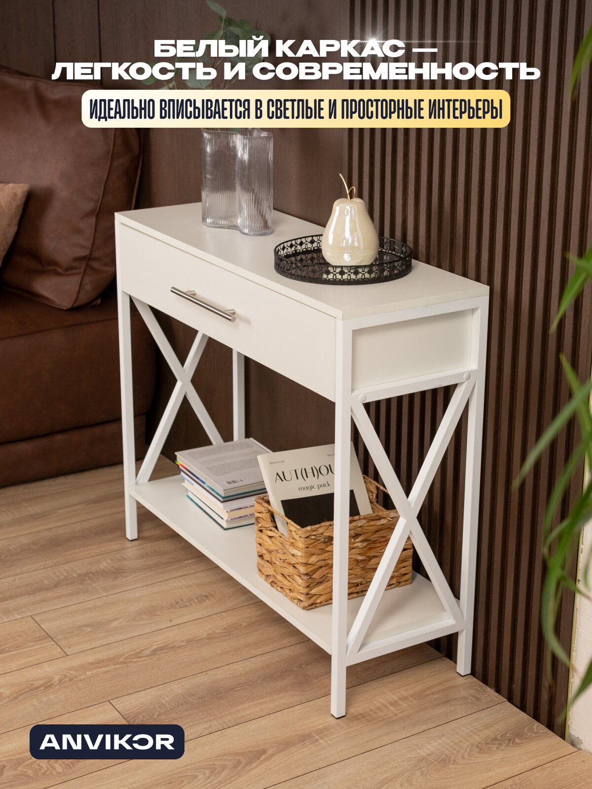 Купить Туалетный столик консольный с ящиком лофт Савуто белый/белый с доставкой по всей России. Туалетный столик консольный с ящиком лофт Савуто белый/белый: сравнение цен, характеристики, фото, актуальное наличие и цены.