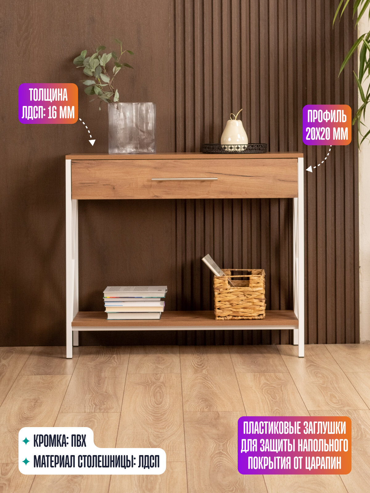 Купить Туалетный столик консольный с ящиком лофт Савуто белый/коричневый с доставкой по всей России. Туалетный столик консольный с ящиком лофт Савуто белый/коричневый: сравнение цен, характеристики, фото, актуальное наличие и цены.