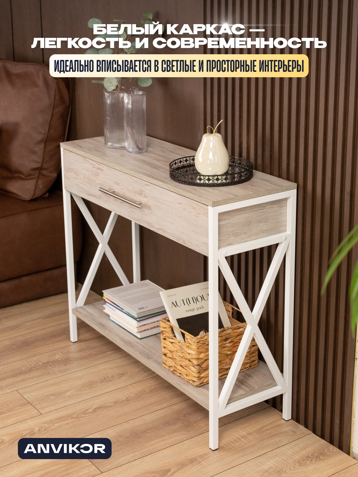 Купить Туалетный столик консольный с ящиком лофт Савуто белый/серый с доставкой по всей России. Туалетный столик консольный с ящиком лофт Савуто белый/серый: сравнение цен, характеристики, фото, актуальное наличие и цены.