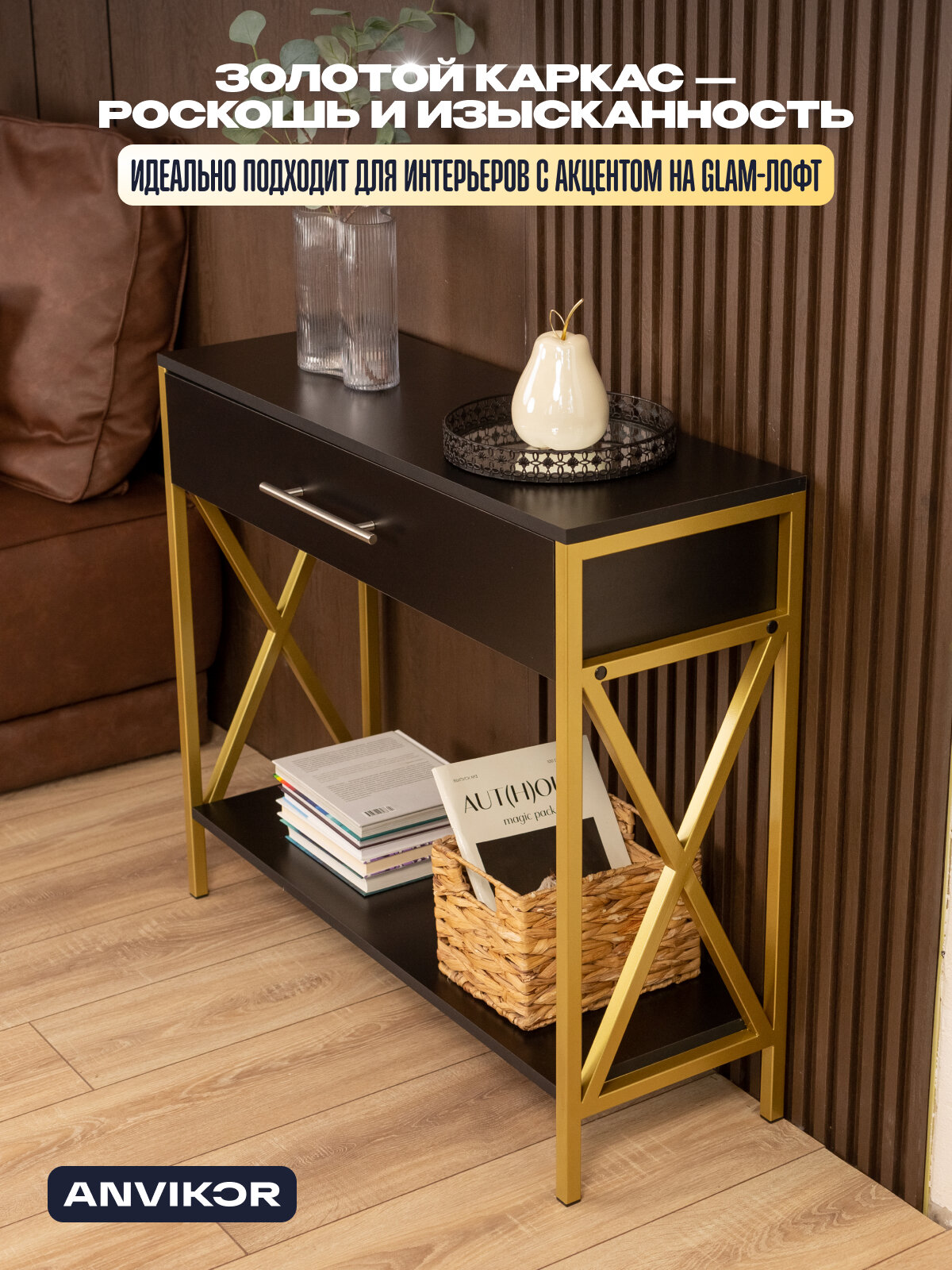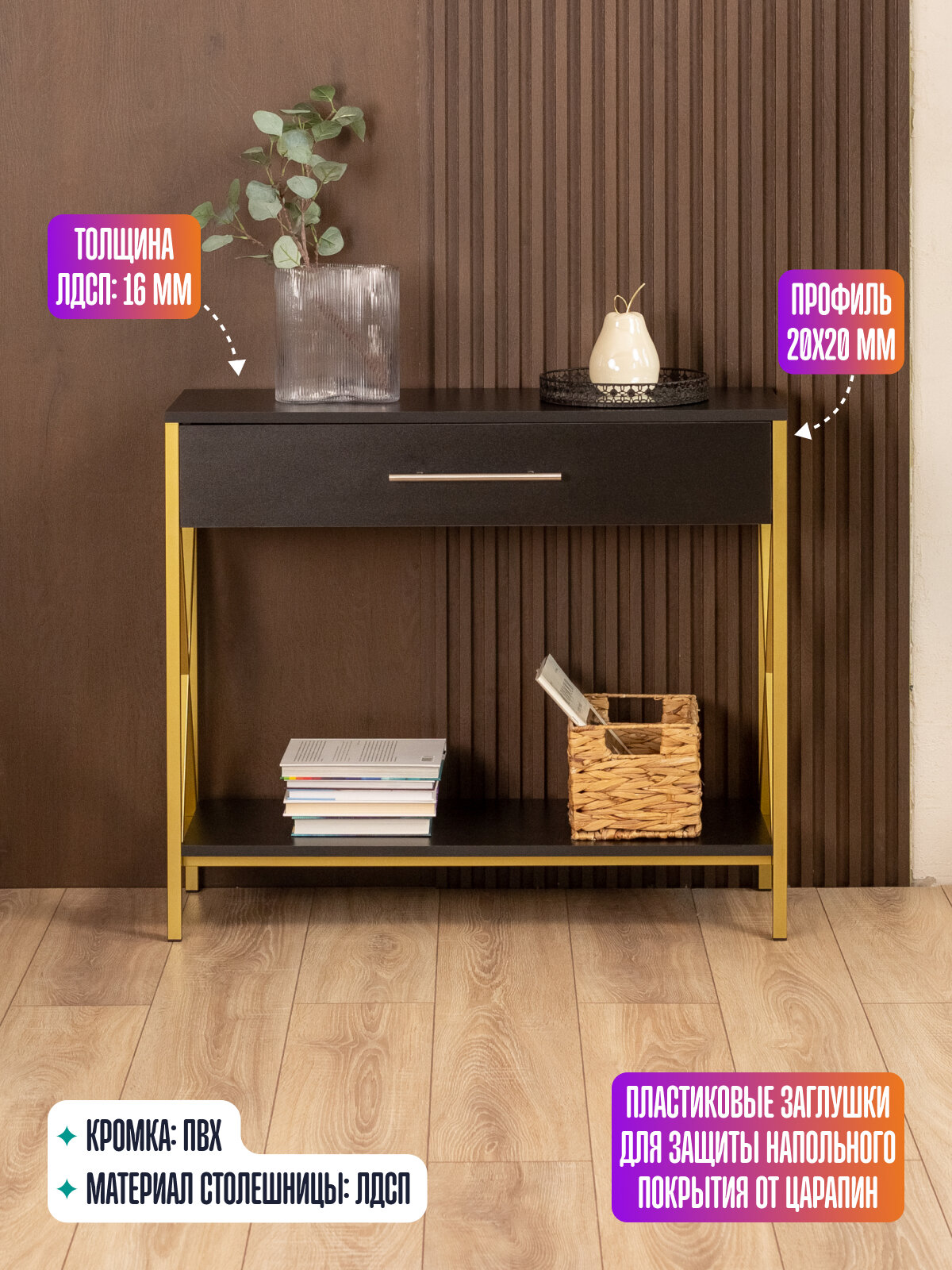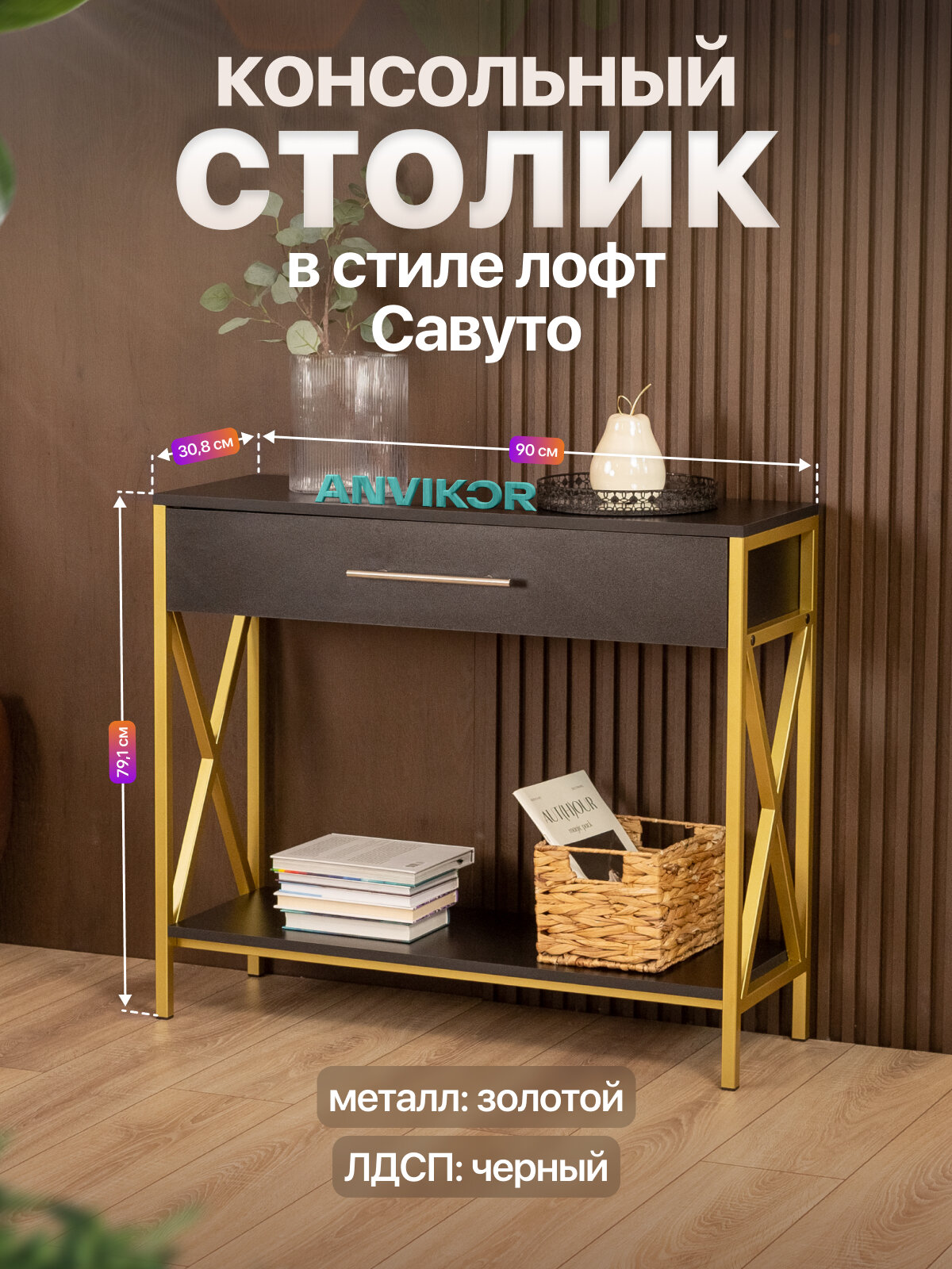 Купить Туалетный столик консольный с ящиком лофт Савуто золотой/черный с доставкой по всей России. Туалетный столик консольный с ящиком лофт Савуто золотой/черный: сравнение цен, характеристики, фото, актуальное наличие и цены.