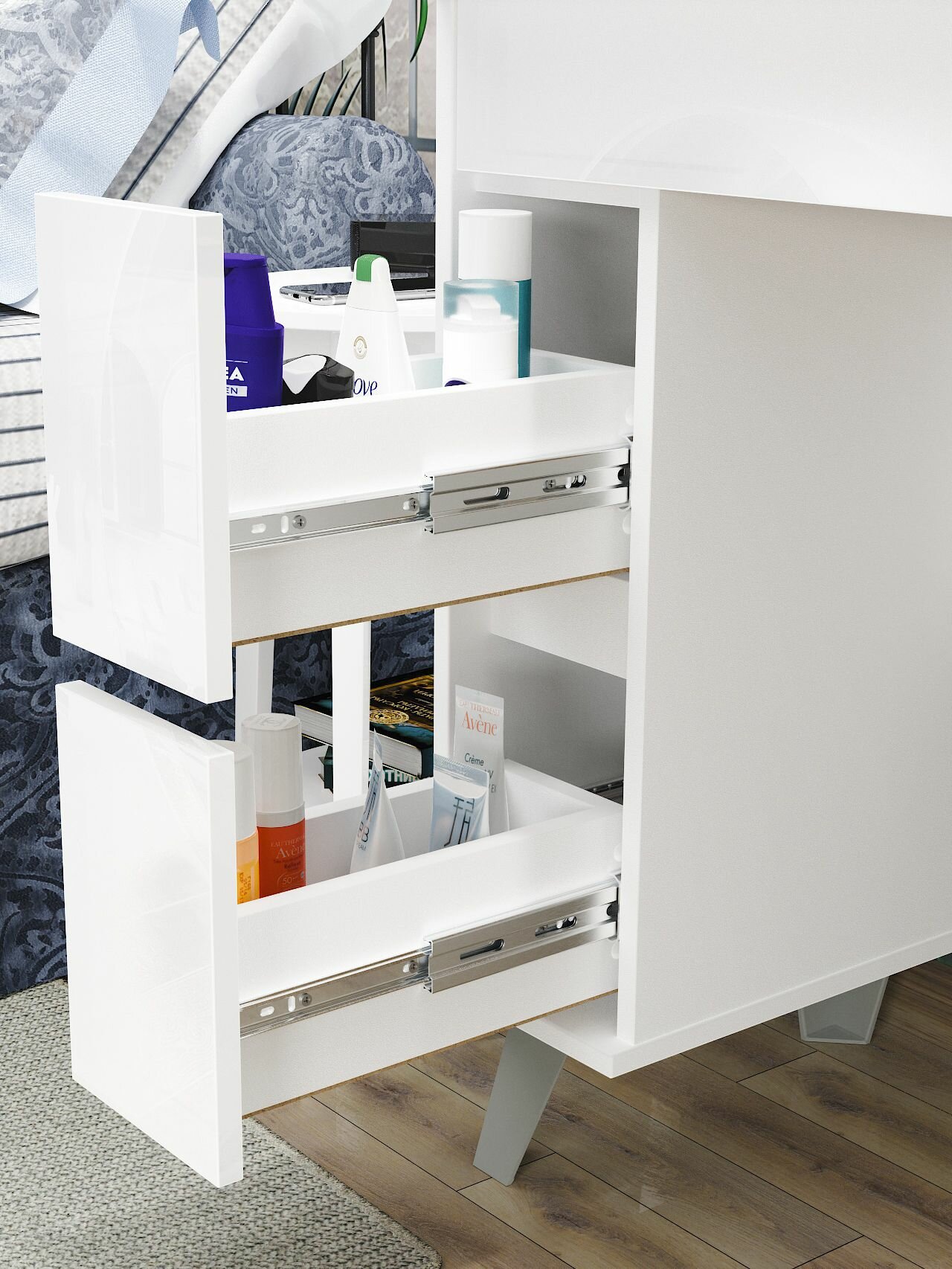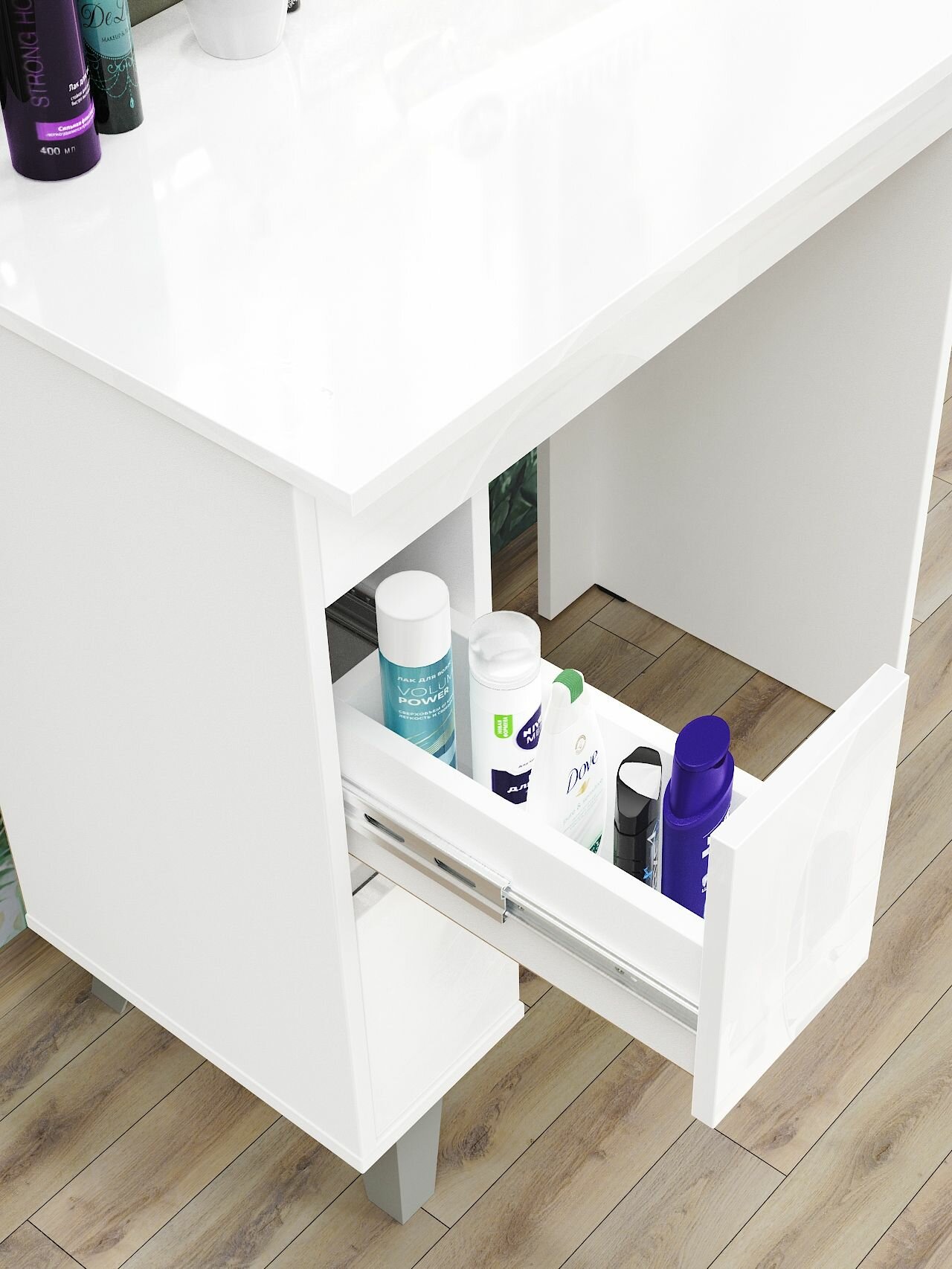 Купить Туалетный столик «Курскмебель», 72,2х44,8х77, белый, ЛДСП, 3 ящика с доставкой по всей России. Туалетный столик «Курскмебель», 72,2х44,8х77, белый, ЛДСП, 3 ящика: сравнение цен, характеристики, фото, актуальное наличие и цены.