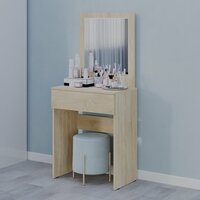 Туалетный столик с зеркалом и ящиком - это элегантное и практичное решение для вашей спальни или ванной комнаты. Он оснащен зеркалом, которое позволяет вам удобно проводить процедуры ухода за собой. Ящик на столике обеспечивает удобное хранение косметики, аксессуаров и других необходимых предметов. Туалетный столик имеет стильный дизайн и может стать прекрасным акцентом в интерьере. Он предоставляет достаточно места для размещения ваших косметических средств и аксессуаров, а также создает уютную атмосферу для проведения утренних и вечерних ритуалов ухода за собой.