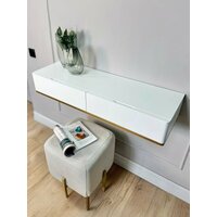 Изготовленный из прочного МДФ и с золотистой вставкой, консольный столик туалетный выглядит стильно и служит надежной основой для хранения. Корпус и фасады стола покрыты белой матовой эмалью RAL 9003, придавая глубокий и насыщенный цвет. Ящики, оснащенные скрытыми направляющими с доводчиками, закрываются плавно и бесшумно, а удобные интегрированные ручки обеспечивают комфортное использование. Это идеальное решение для содержания косметики, принадлежностей для маникюра или других личных вещей, которые важно иметь под рукой, но не на виду. Подвесная тумба настенная является отличным вариантом для спальни и небольших помещений, таких как коридор или детская комната.