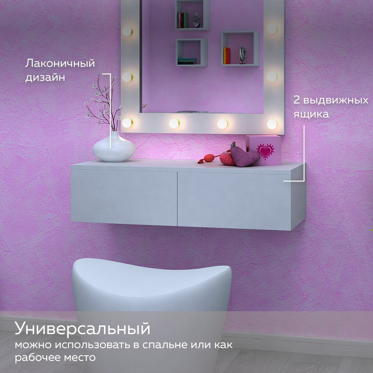 Туалетный столик Secret гримерный (для макияжа), подвесная консоль, Белый: сравнение цен, характеристики, фото, актуальное наличие и цены.