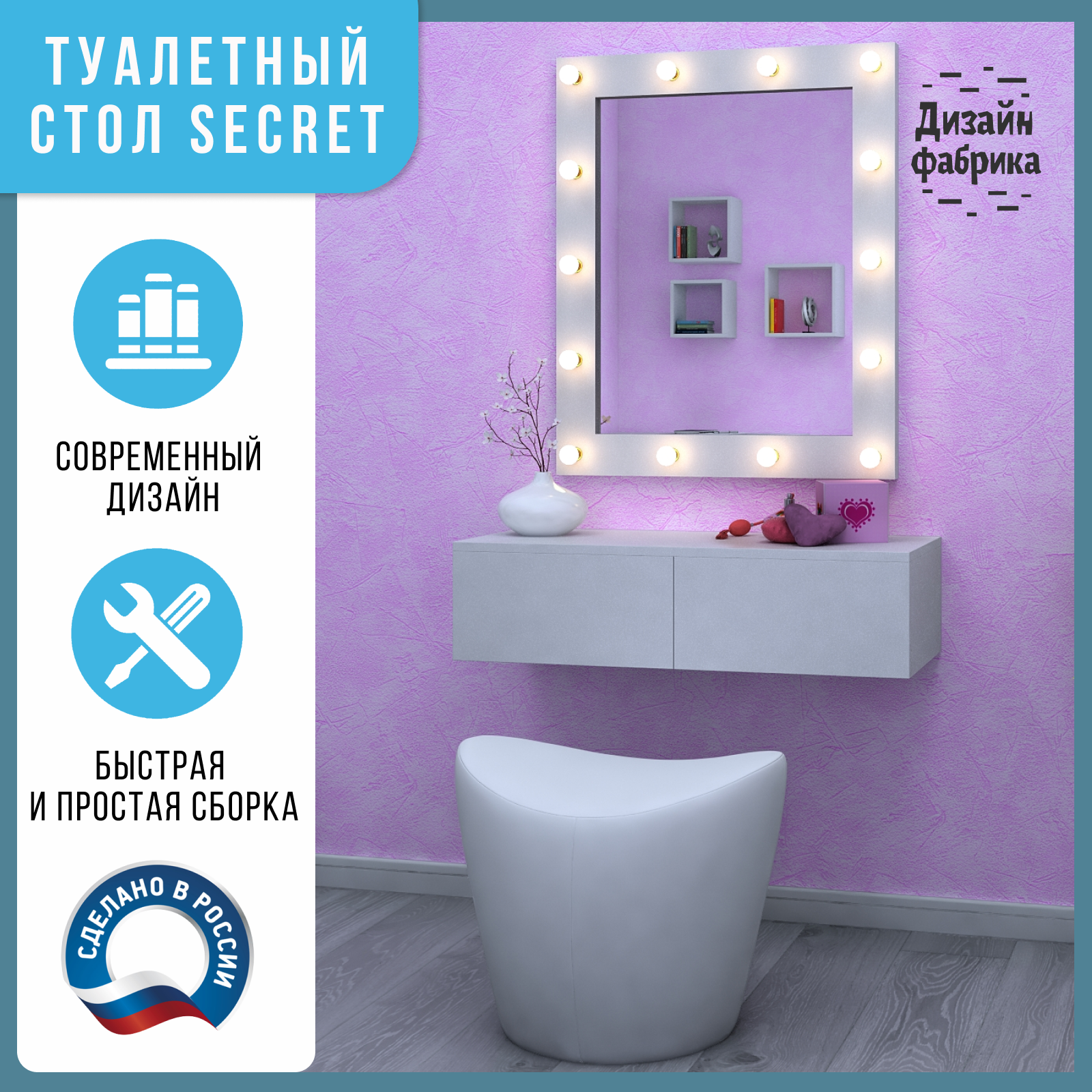 Купить Туалетный столик Secret гримерный (для макияжа), подвесная консоль, Белый с доставкой по всей России.