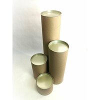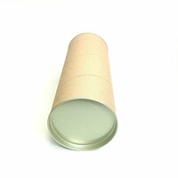 Тубус имеет серо-коричневый цвет крафт бумаги с наружи и белый офсетный слой внутри.