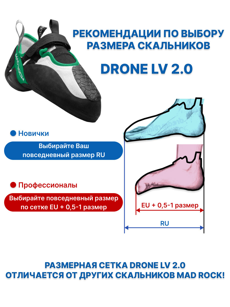 Универсальные скальные туфли MAD ROCK DRONE HV 2.0 арт.995708 , на УЗКУЮ НОГУ, средней жёсткости - это обновленная модель классических DRONE HV:
