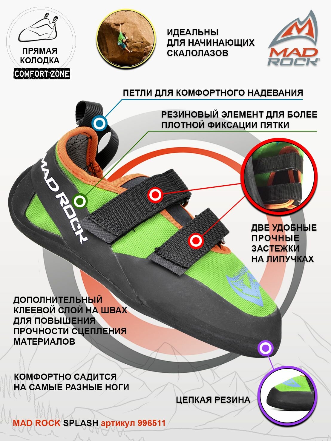 Купить Туфли для скалолазания MAD ROCK SPLASH GREEN, размер EU 46,5 с доставкой по всей России.