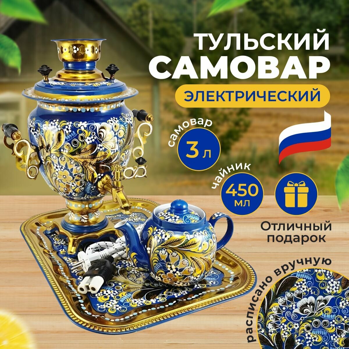 Купить Электрический самовар тульский, Ландыш синий фон с доставкой по всей России.