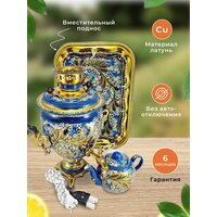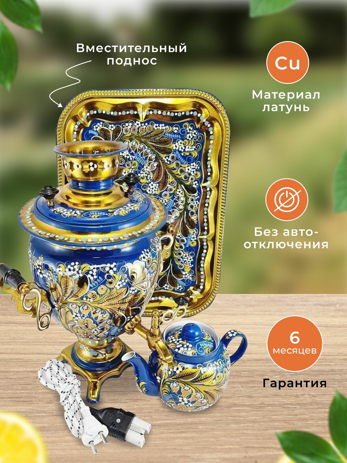 Электрический самовар тульский, Ландыш синий фон: сравнение цен, характеристики, фото, актуальное наличие и цены.