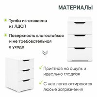 Тумба с ящиками, в офис под стол, в детскую, в спальню, в гостиную, в прихожую, 40х52х65 см, Momal белая: сравнение цен, характеристики, фото, актуальное наличие и цены.
