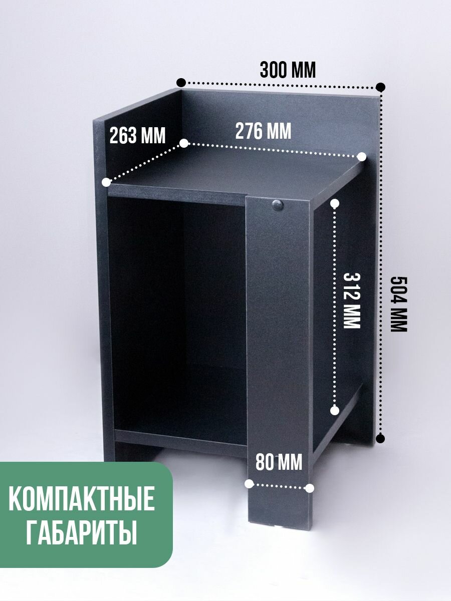 Прикроватная тумба имеет полки для косметики и игрушек. Полки предлагают удобный доступ к нужным предметам, а верхняя поверхность может разместить телевизор или настольную лампу.