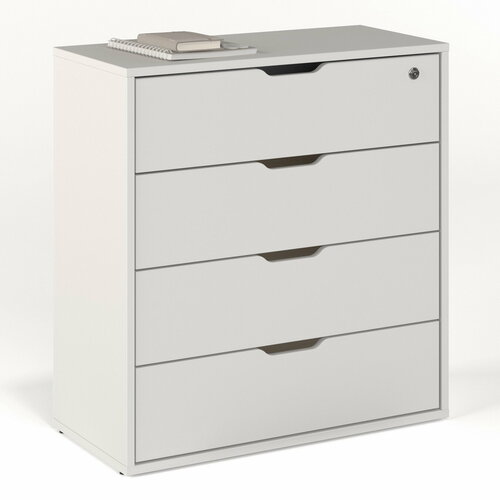 Тумба оснащена четырьмя ящиками, что обеспечивает удобное хранение различных предметов. Ящики оснащены роликовыми направляющими, что обеспечивает плавное и бесшумное открывание и закрывание.