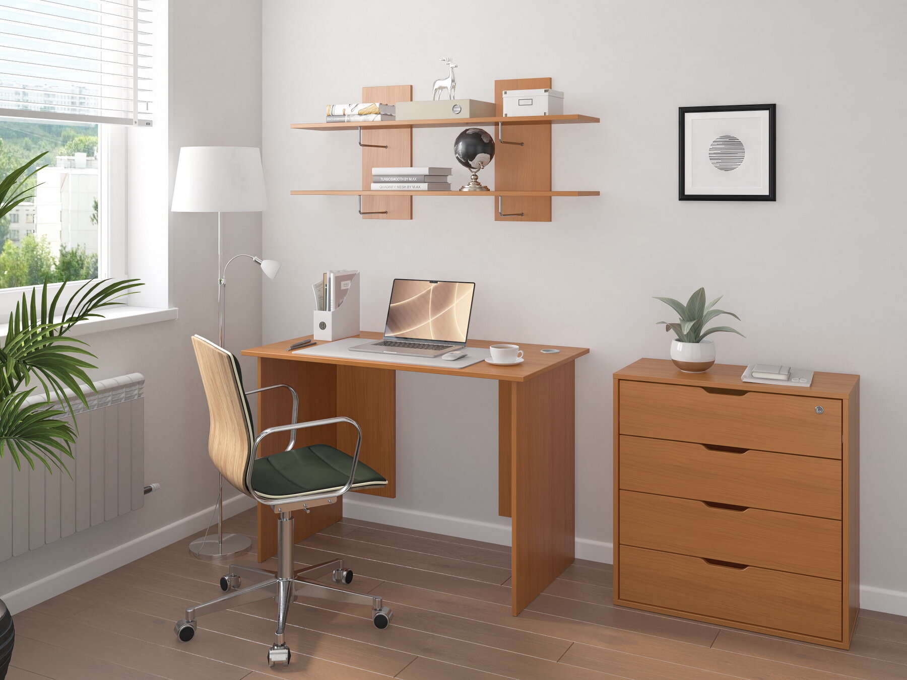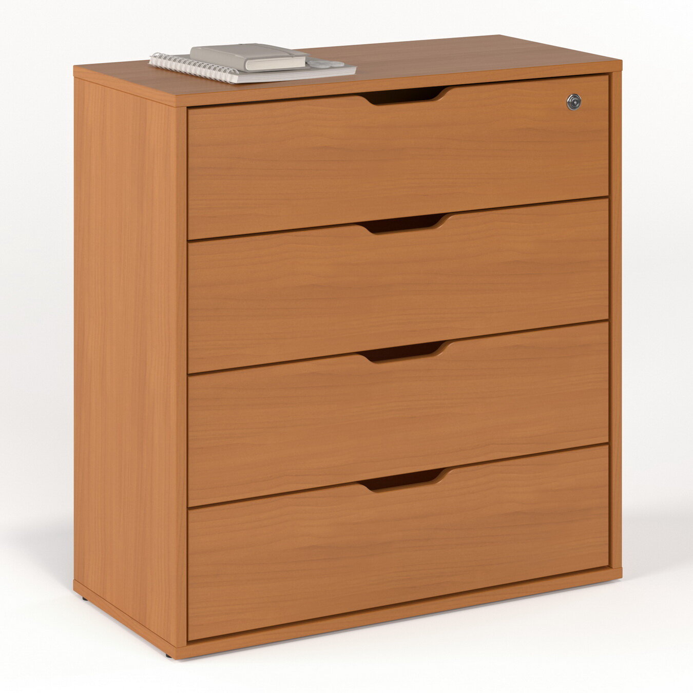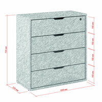 Тумба оснащена четырьмя ящиками, что обеспечивает удобное хранение различных предметов. Ящики оснащены роликовыми направляющими, что обеспечивает плавное и бесшумное открывание.