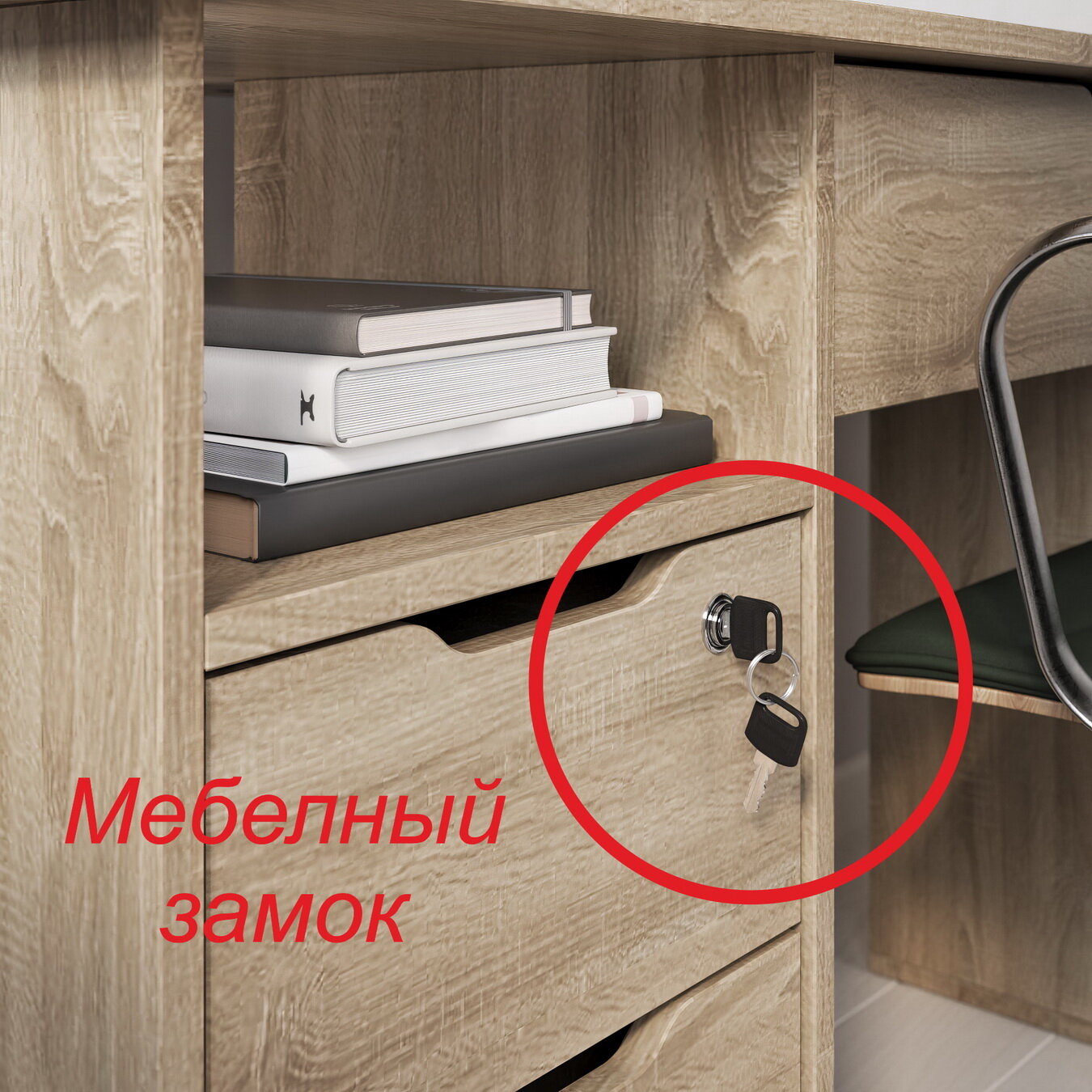 Тумба оборудована мебельным замком, что обеспечивает безопасность хранения ваших вещей. Отсутствие ручек на фасаде делает тумбу более стильной и современной.