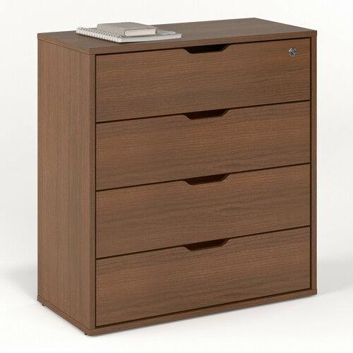 Тумба оснащена четырьмя ящиками, что обеспечивает дополнительное пространство для хранения различных предметов. Ящики оснащены роликовыми направляющими, что обеспечивает плавное и бесшумное открывание и закрывание.