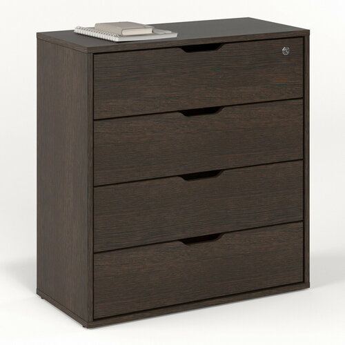 Тумба оснащена четырьмя ящиками, что обеспечивает удобное хранение различных предметов. Ящики оснащены роликовыми направляющими, что обеспечивает плавное и бесшумное открывание.